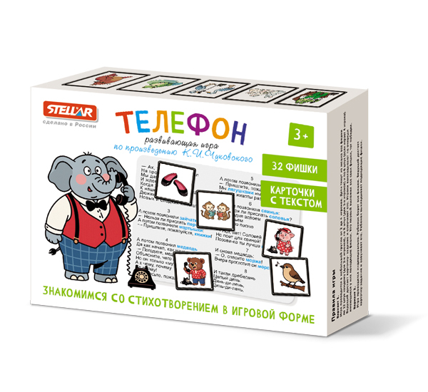Представляем вашему вниманию новинку — развивающую игру «ТЕЛЕФОН», созданную по мотивам знаменитого стихотворения Корнея Ивановича Чуковского.